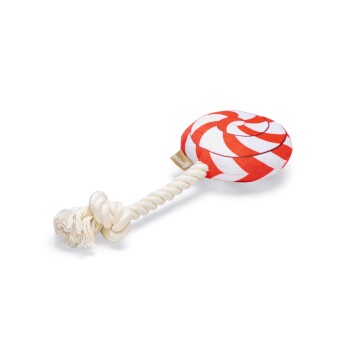 This Christmas lollipop from Beeztees will make your dog happy. The lollipop is made of soft plush and has a squeaker. Your dog will love playing with it. The cotton rope stick playfully cleans teeth. After delicious Christmas cookies, it's the ideal gift.